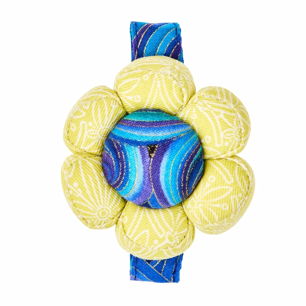 An ideal item to have while working on all needlecraft and machine or hand sewing projects. This colorful pin cushion features a soft, comfortable cotton adjustable strap.